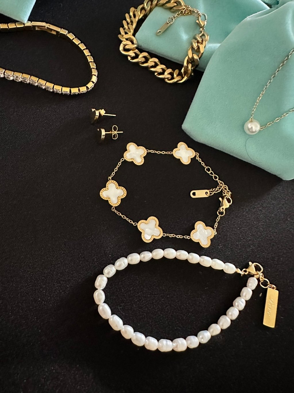 Joyería de stainless steel con baño de oro 18k.